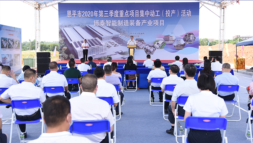 江门市副市长蔡德威,恩平市委副书记、市长刘兵,恩平市领导关凯宁、岑安林等参加米兰milan智能制造装备产业项目动工仪式。